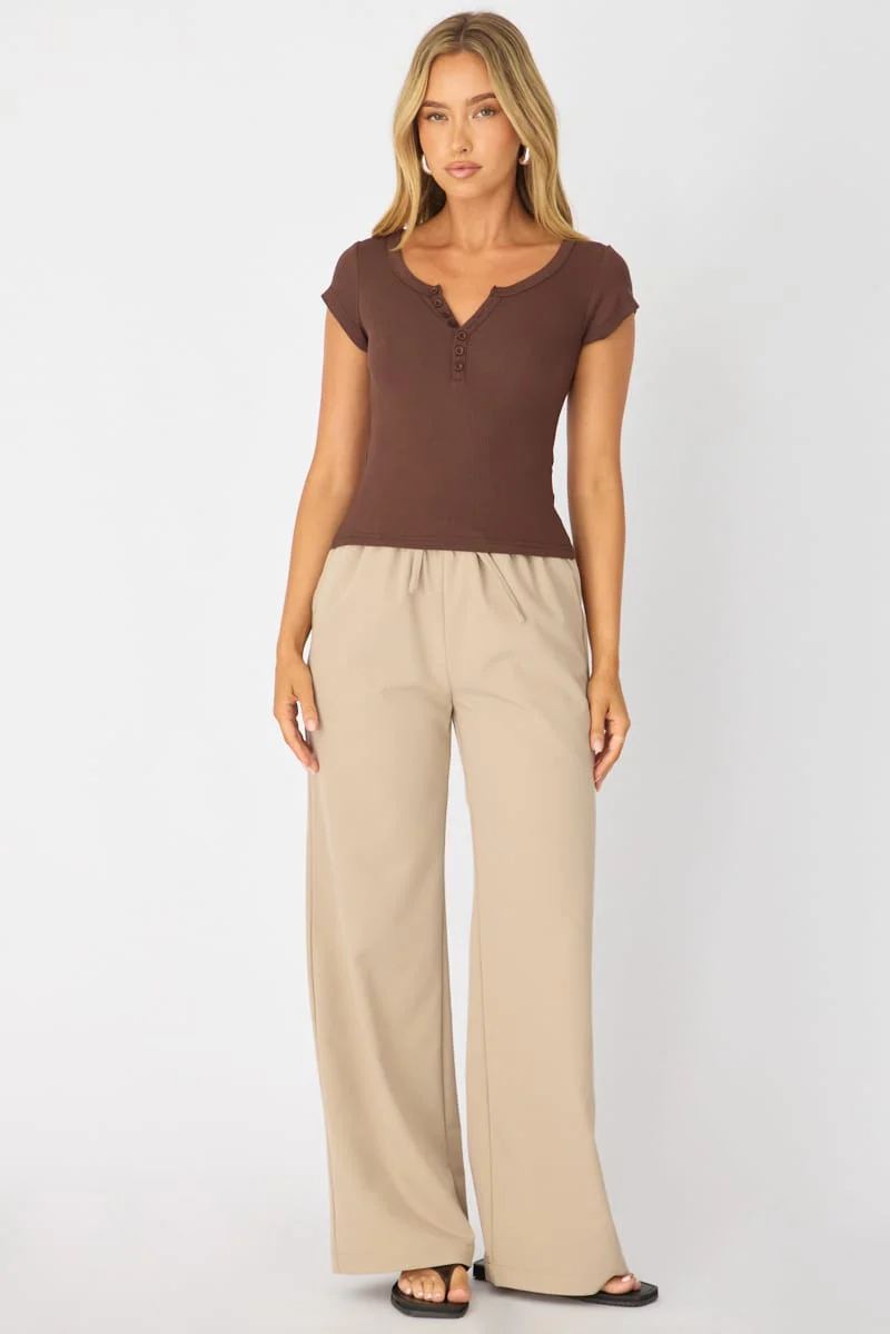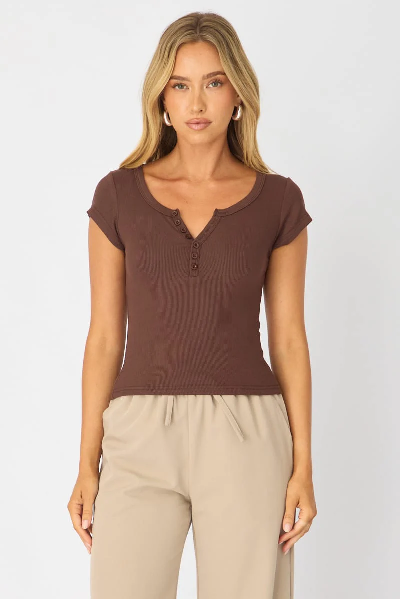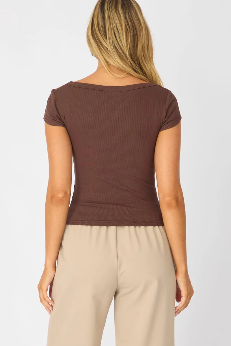 Brown V-neck Long Sleeve Top