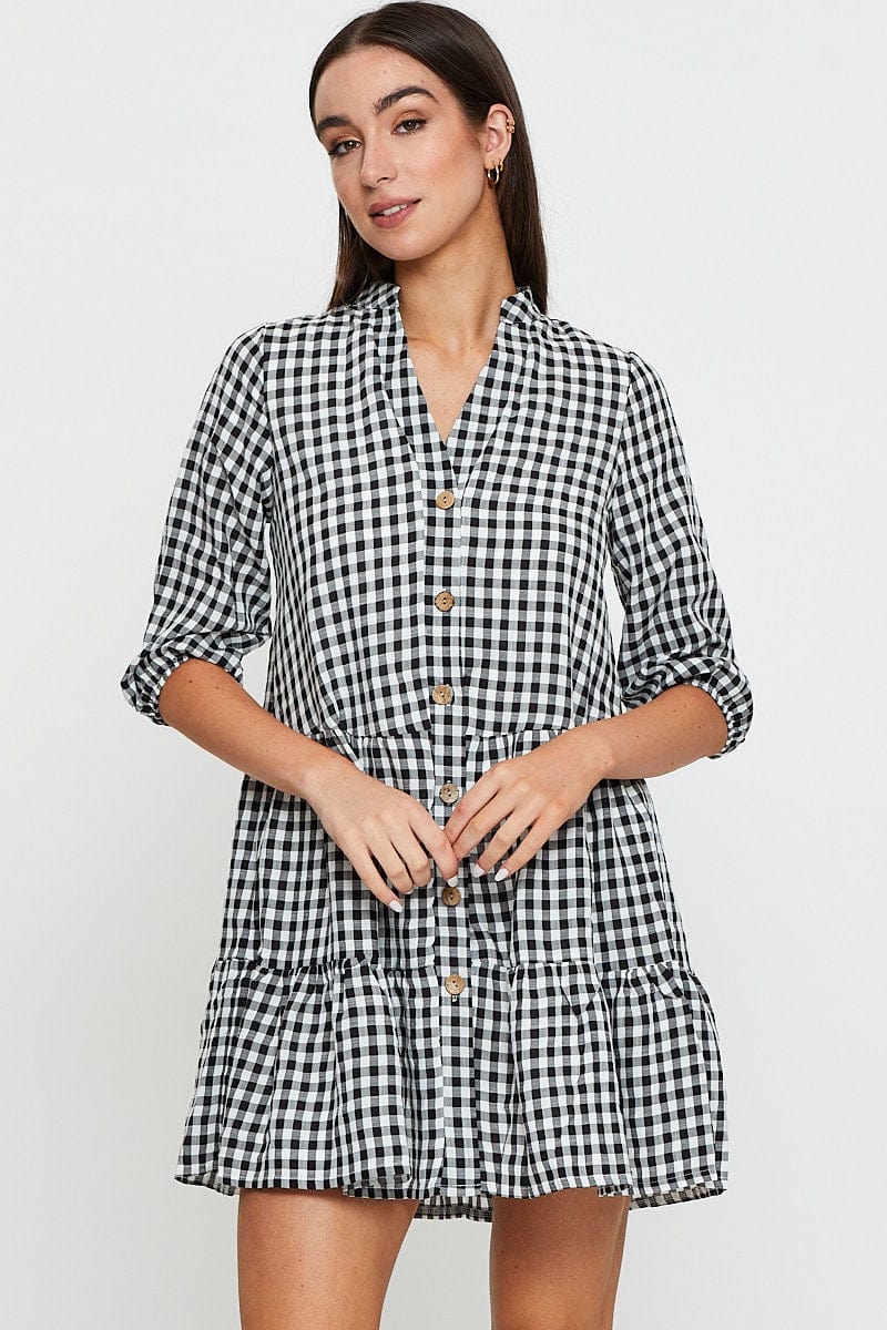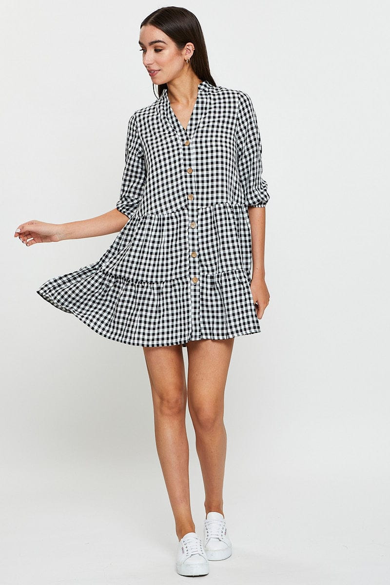 Brand: Ally Fashion Season: All Style: Casual Pattern: Check Features: Gingham Print, Button Front, Half Sleeve, Mini Length Neckline: V Neck Sleeve Length: 41Cm Body Length: 85Cm Fabric: Cotton Material: Polyester Composition: 100% Polyester Model Details: Xs / Aus 8 / Nz 8 / Uk 8 / Us 4, 175Cm Style Code: DD7845B-30F